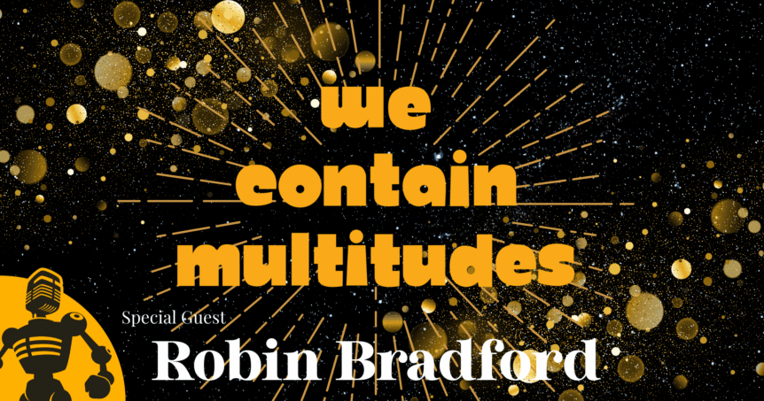 [jazzy jumpin’ music]Sandra Wong: Hello and welcome to We Contain Multitudes, the casual interview show with famous and accomplished guests who share the geek-outs, hobbies and interests, which they might not necessarily be known for. I’m your host, Sandra Wong, and today I have the pleasure of being joined by Robin Bradford. Hi, Robin.
